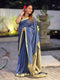 Chandini- Rustic Gold, Full Zari Cotton Handwoven Saree With Sky Blue Striped Border | Running Blouse